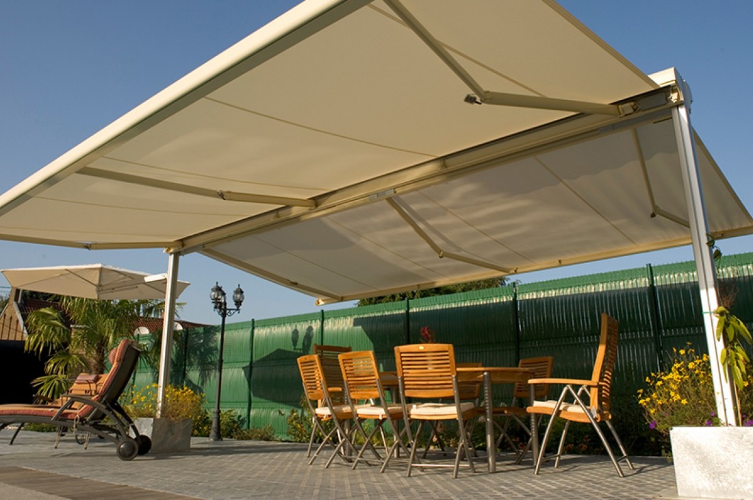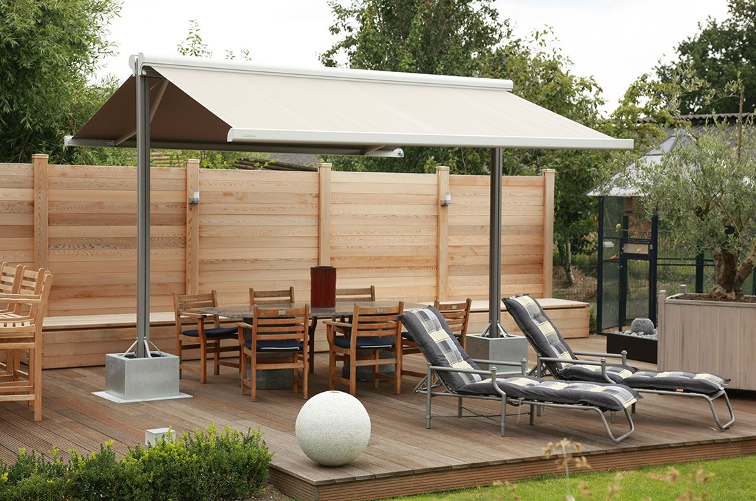 This garden awning solution offers LED lighting and patio heating integrated via your remote control, generating warmth and comfort for those cooler evenings. An extra valance is also optional in the front of each awning to create the desired shading you're after.